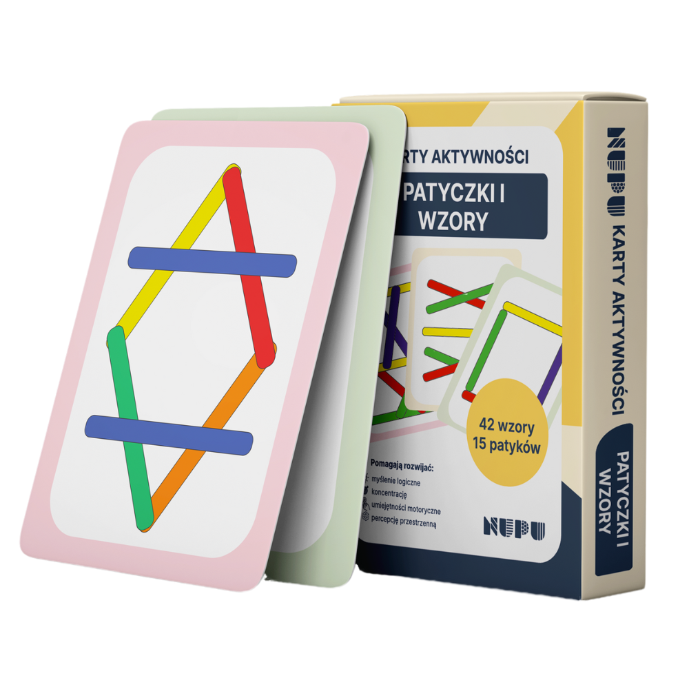Karty aktywności „patyczki i wzory” to prosta i wciągająca gra, która pomaga rozwijać koncentrację, logiczne myślenie i cierpliwość u dzieci. Gra składa się z kolorowych patyczków oraz kart z różnymi wzorami. Dzieci mogą używać kolorowych patyczków do odtwarzania wzorów przedstawionych na kartach.