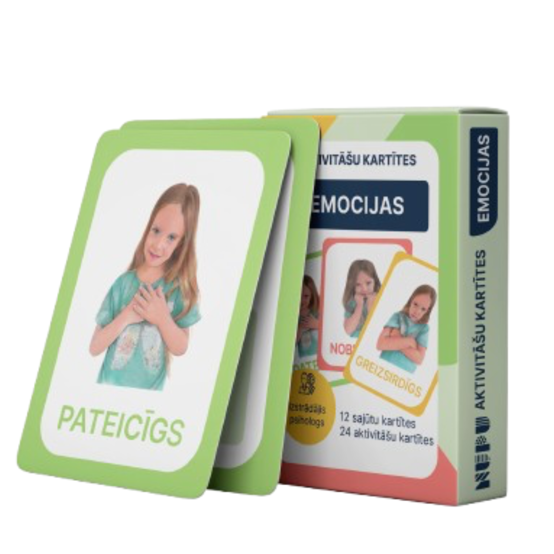 Aktivitāšu kartītes palīdz tikt galā ar emocijām. Katrā kartītē ir aktivitātes nosaukums, ilustratīvs zīmējums un instrukcijas.